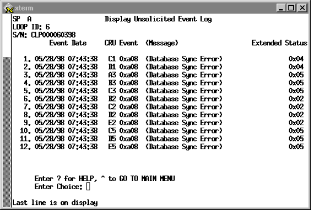 Figure 6-8 Grid Manager Unsolicited Event Log