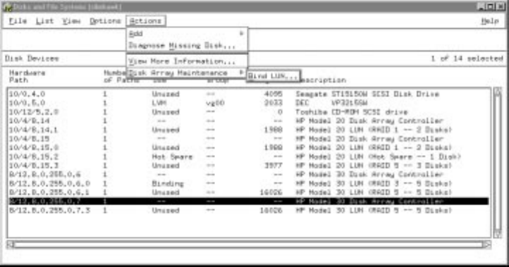 Figure 6-24 Disk and File Systems Screen, Bind LUN Selection