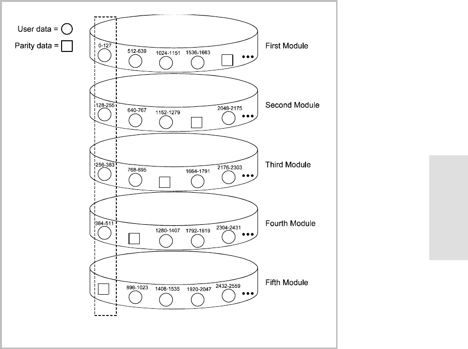 Figure 1-13 Distribution of User and Parity Data in a RAID-5 Group