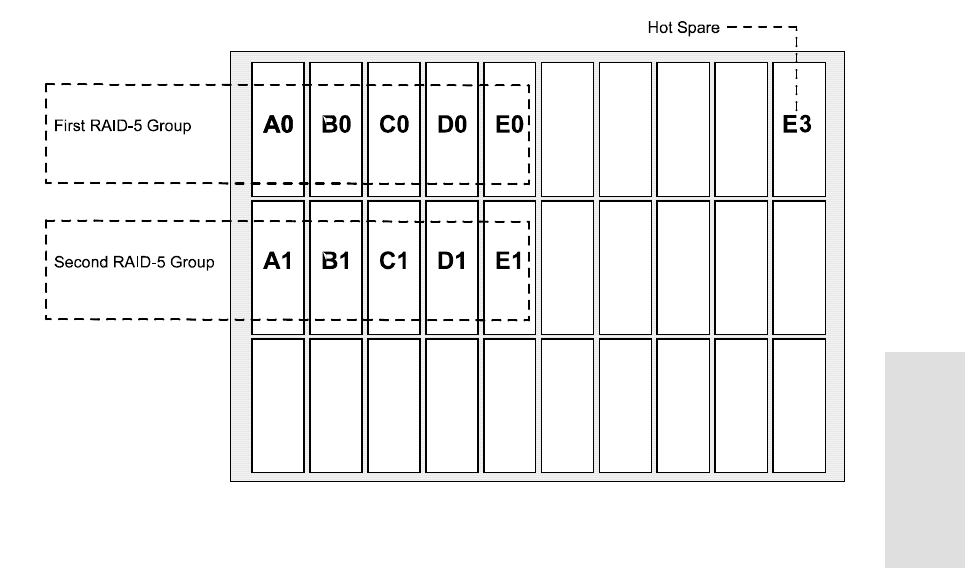 Figure 1-14 Example of a Disk Array with Two RAID-5 Groups and One Global Hot Spare