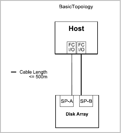 Figure 2-1 Basic Topology, High Availability Version: Host with Two FC I/O Adapters