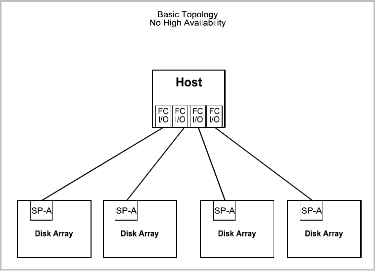 Figure 2-3 Basic Topology, Non-High Availability Version: Host with Four FC I/O Adapters