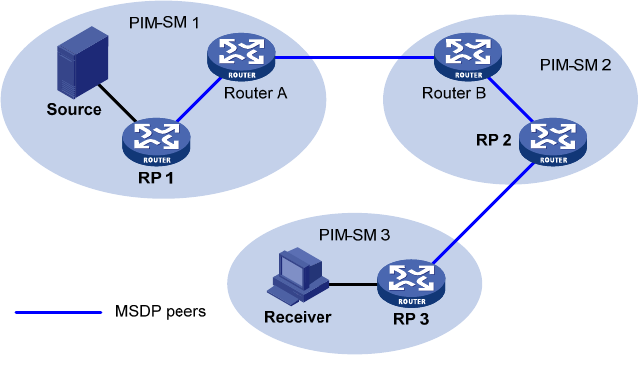 As shown in Figure 50, an MSDP peer can be created on any PIM-SM router. MSDP peers created on