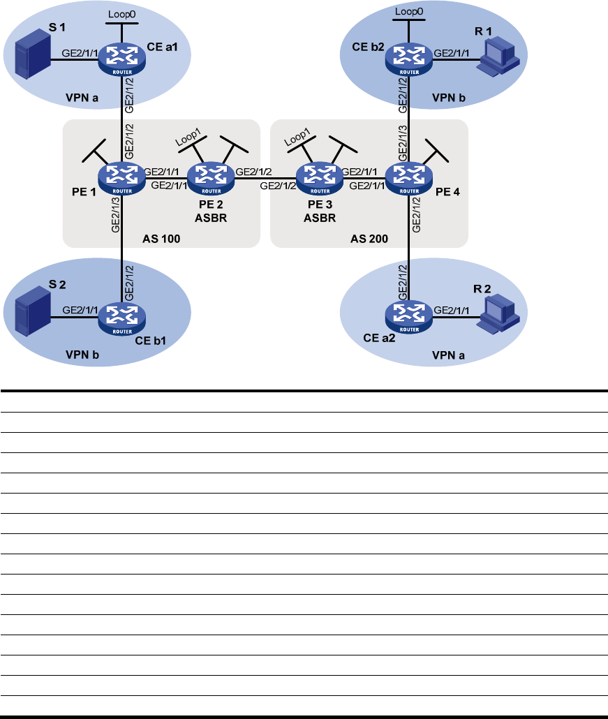 PE 1 GE2/1/1 10.10.1.1/24 PE 3 GE2/1/1 10.10.2.1/24