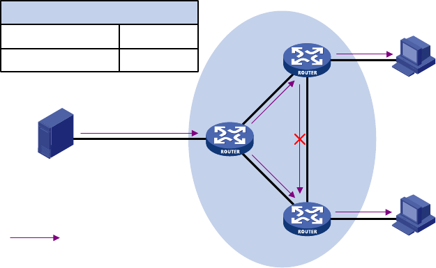 from the multicast source to the receivers. The multicast forwarding table on Router C contains the (S, G)