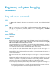 Ping, tracert, and system debugging commands Ping and tracert commands ping Use ping to verify whether the destination in an IP network is reachable, and to display the related statistics.