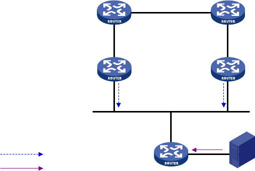 As shown in Figure 94, without the DF election mechanism, both Router B and Router C can receive