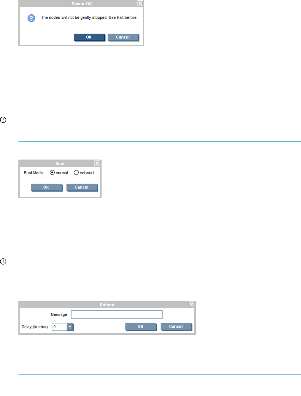 IMPORTANT: If the nodes are booted, the boot procedure attempts a proper shutdown. If the
