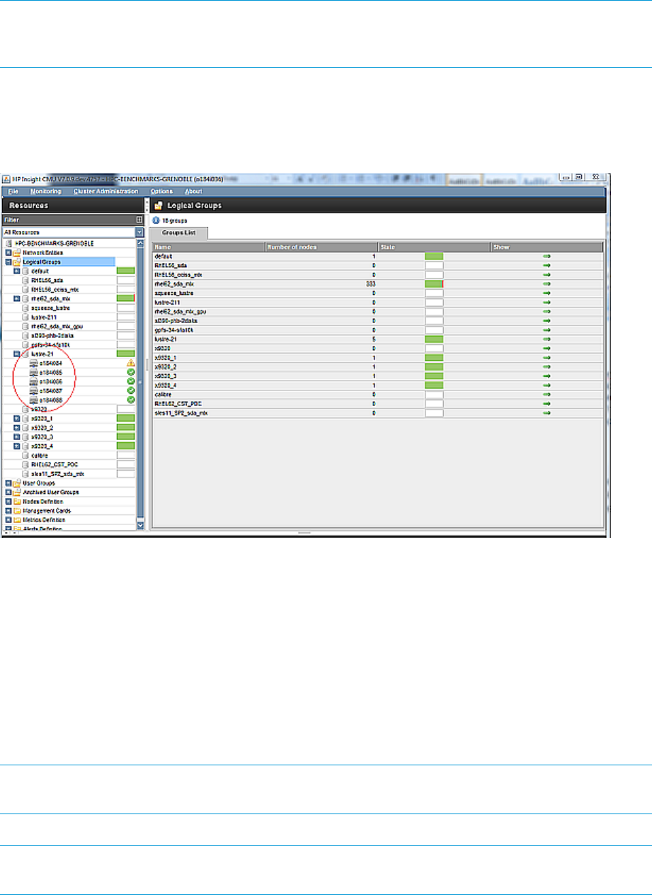 then expand the desired logical group. Figure 30 (page 86) displays nodes belonging to the