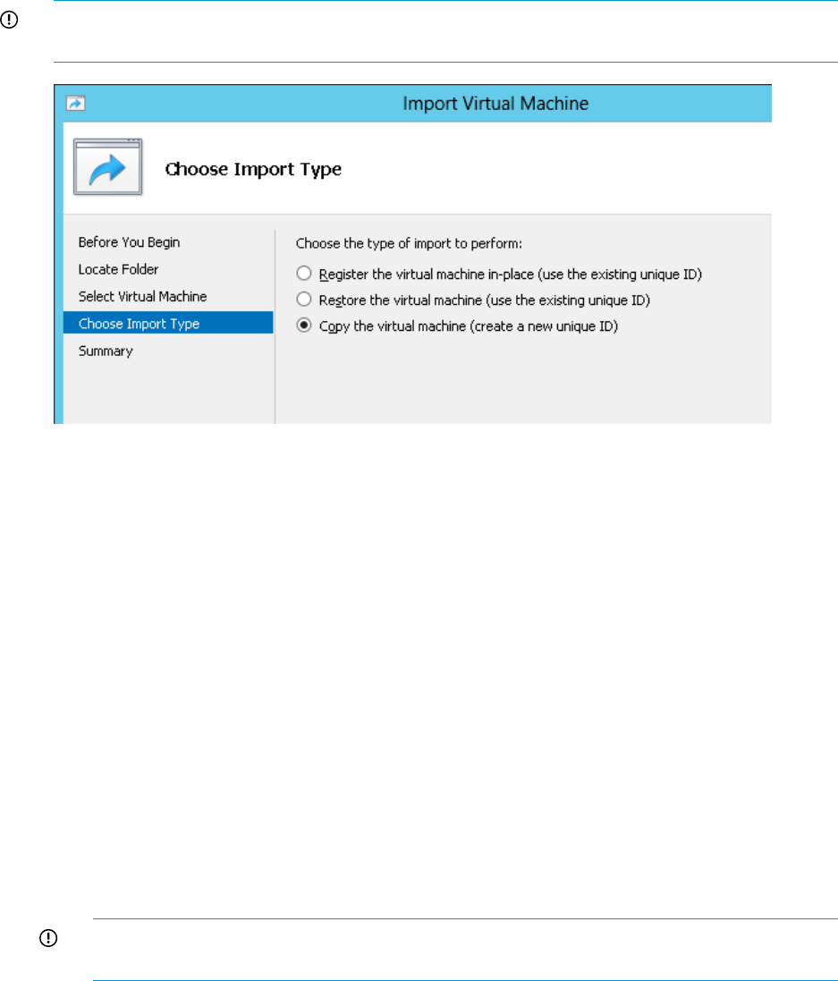 IMPORTANT: Be sure to select "Copy the virtual machine” (create a new unique ID) option