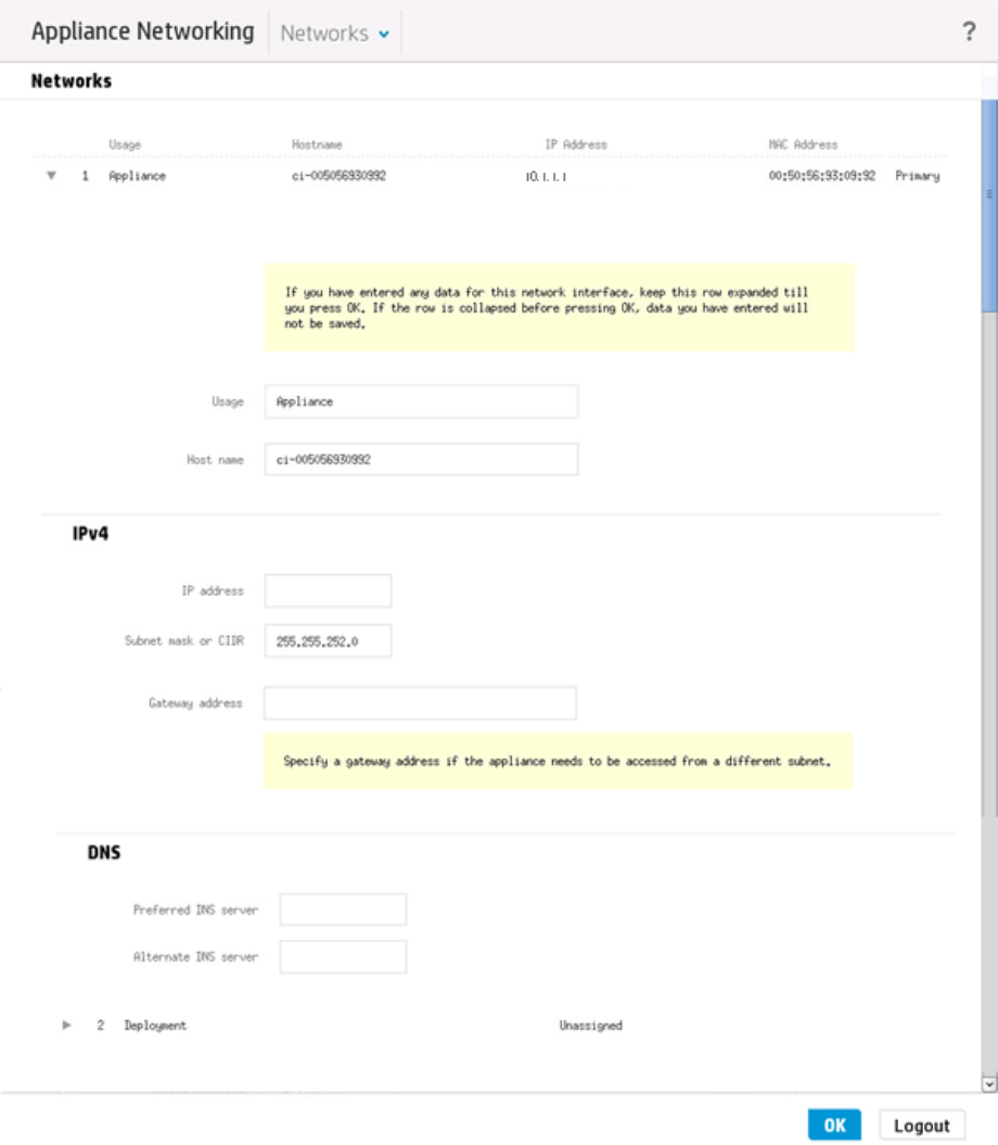 • IP address: This is the IP address you are assigning to this appliance (the Appliance IP). Use