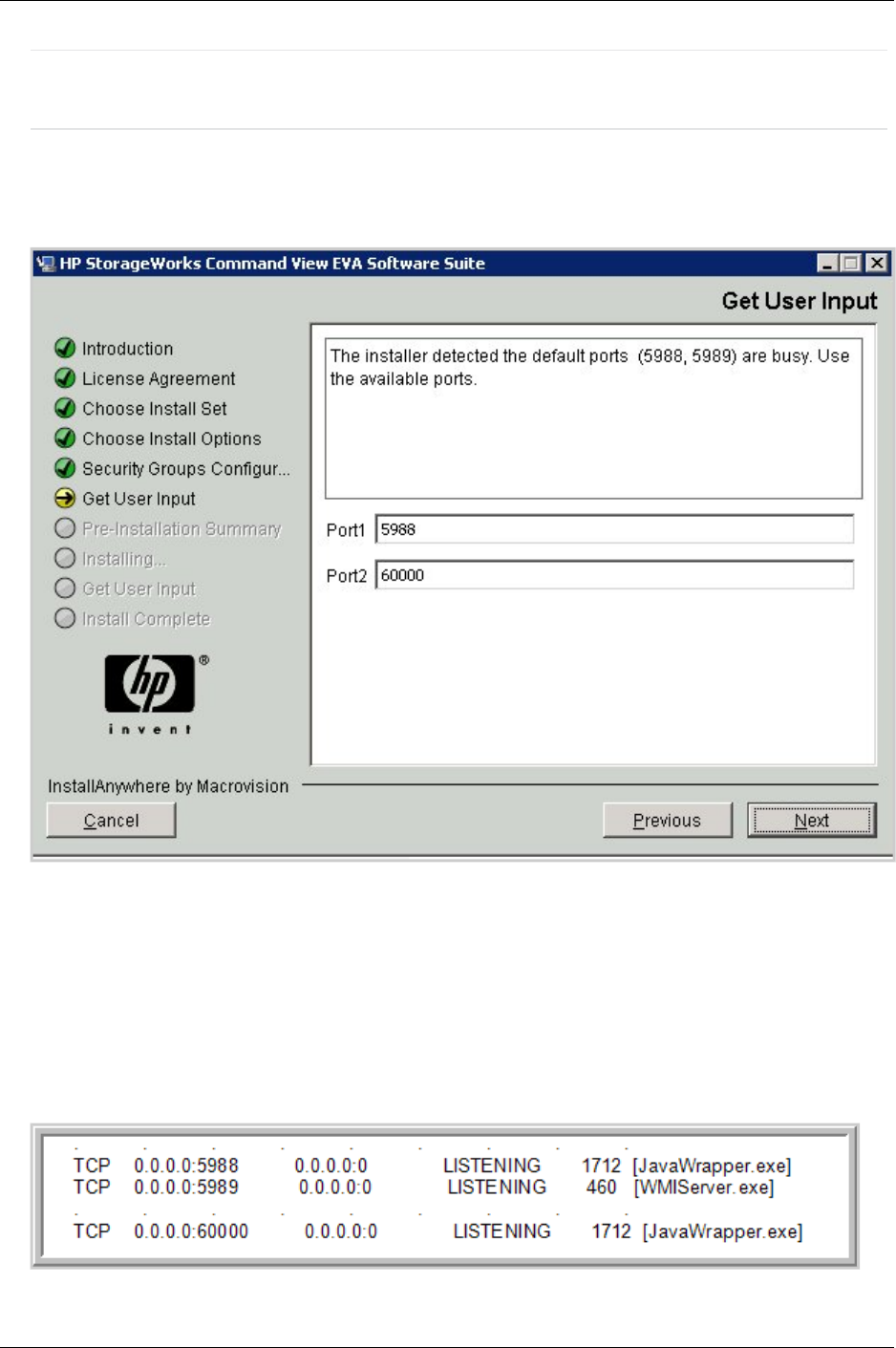 Note: This screen will only display if a port conflict is detected. That is why the sequence to install HP