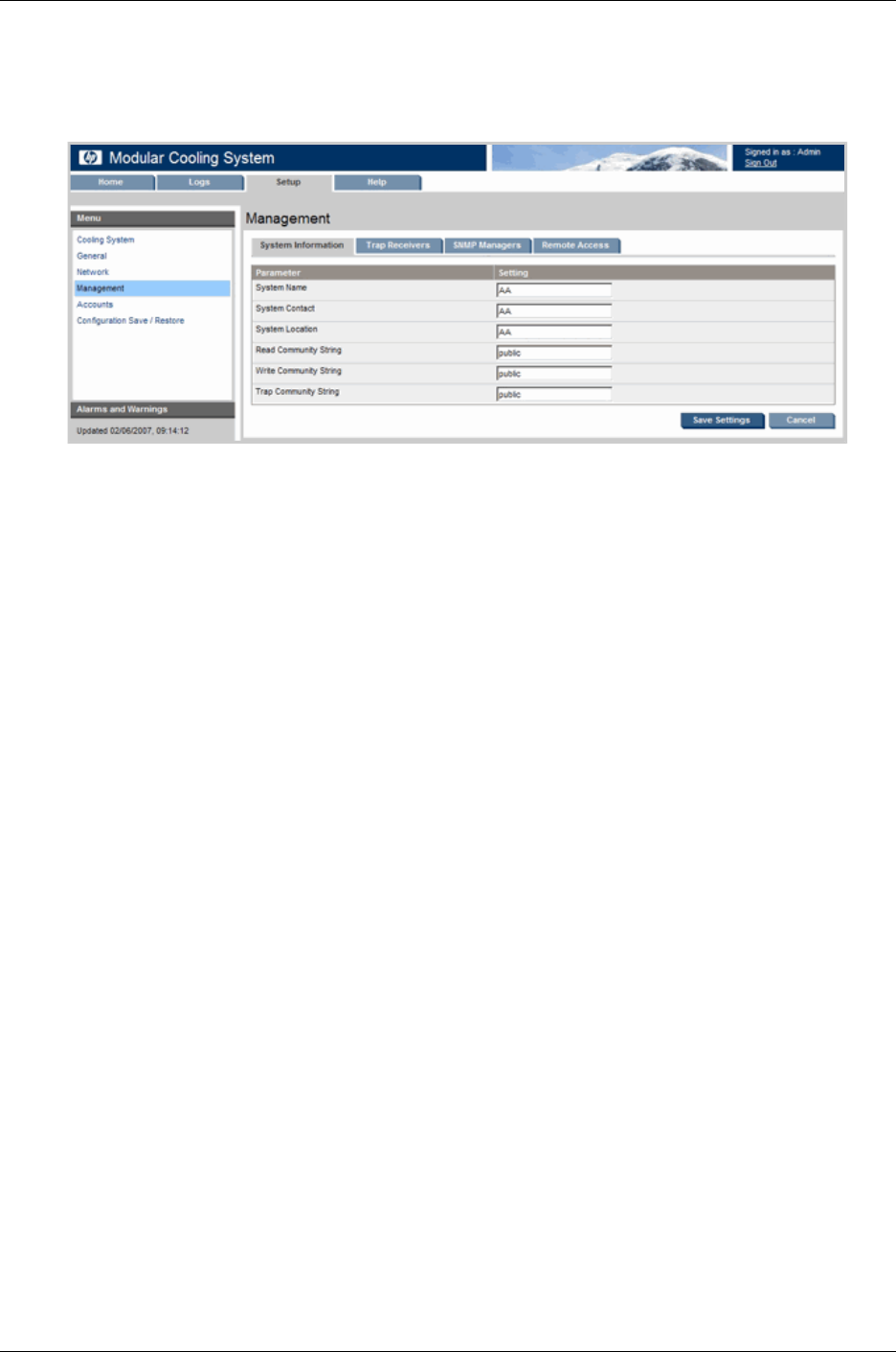 2. Navigate to Setup → Management → System Information. The information entered on this screen