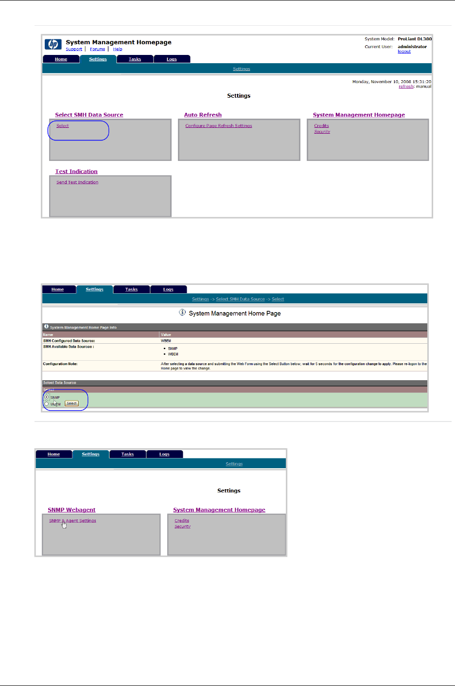 4. In the SNMP Web Agent box, click the SNMP and Agent link.