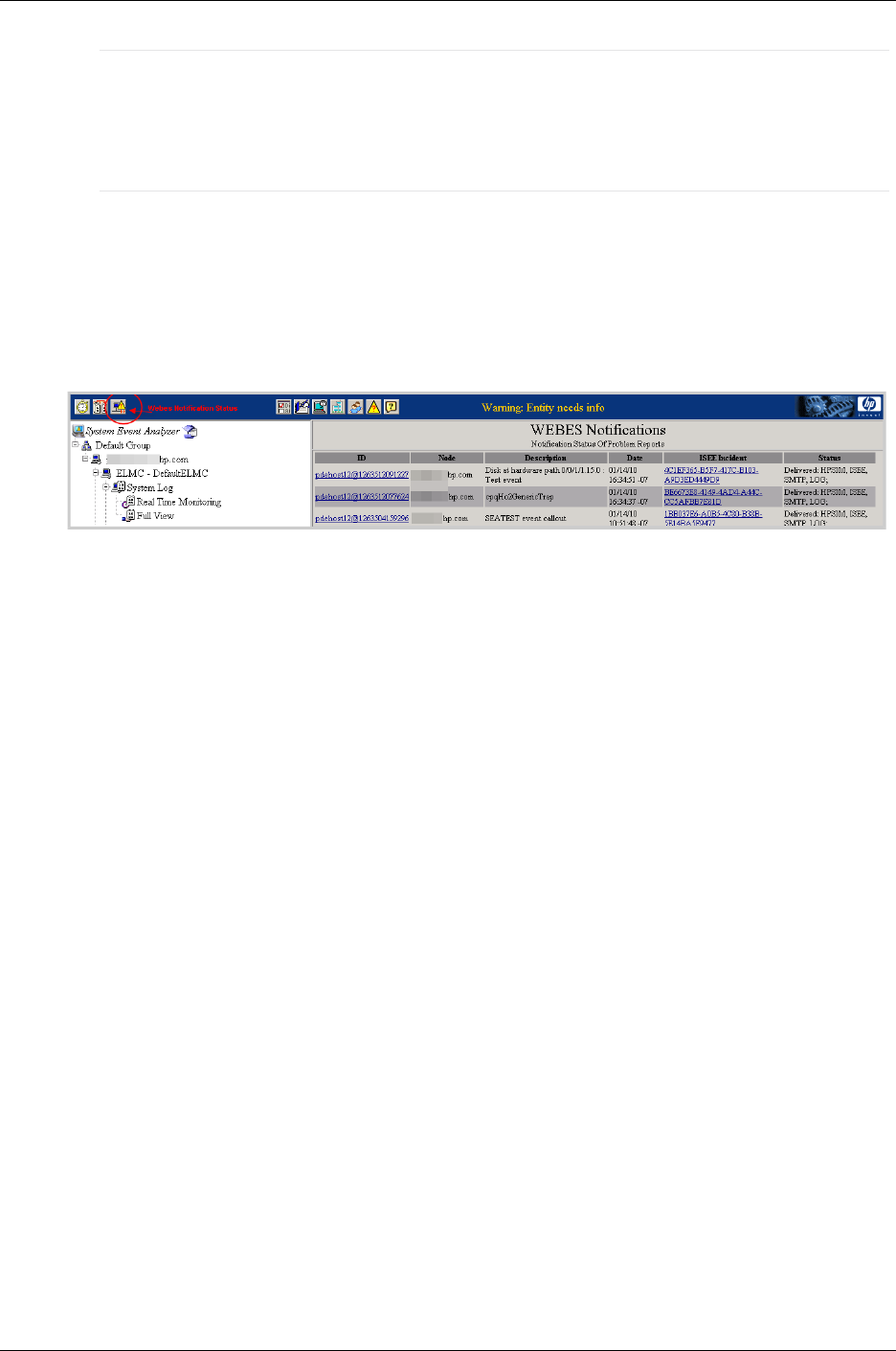 2. In the SEA interface, click on the WEBES Notification Status icon (see the circled icon in the image