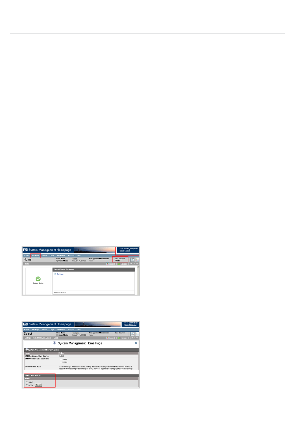 Note: If you are not prompted for a logon, check the upper right corner of the SMH interface and
