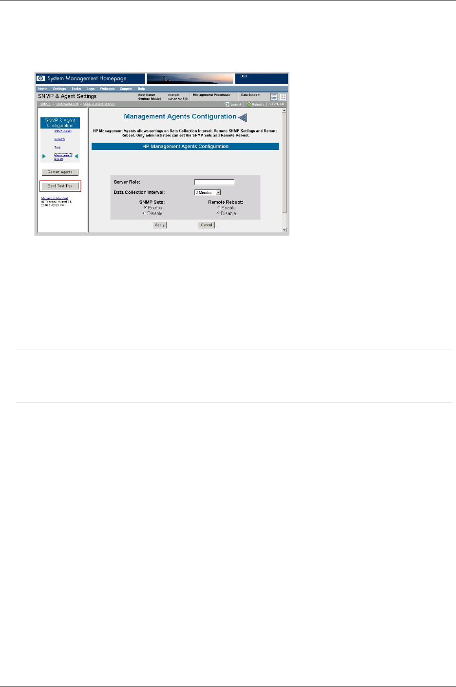 6. In the Management Agents Configuration screen, click Send Test Trap.
