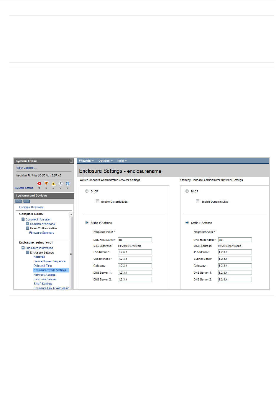 Advanced, both the active and standby OA’s network settings should be verified to ensure all values
