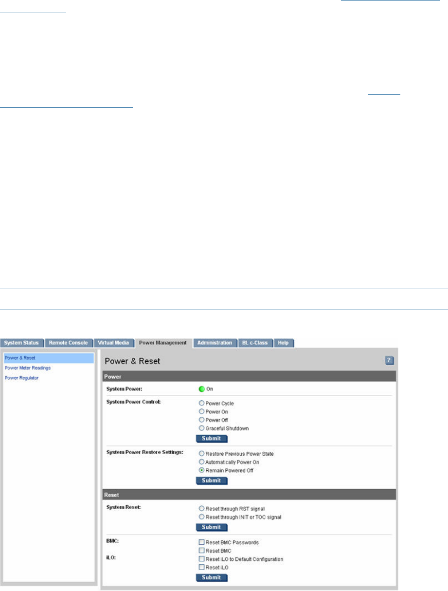 The Power & Reset page (Figure 31) enables you to view and control the power state of the server.