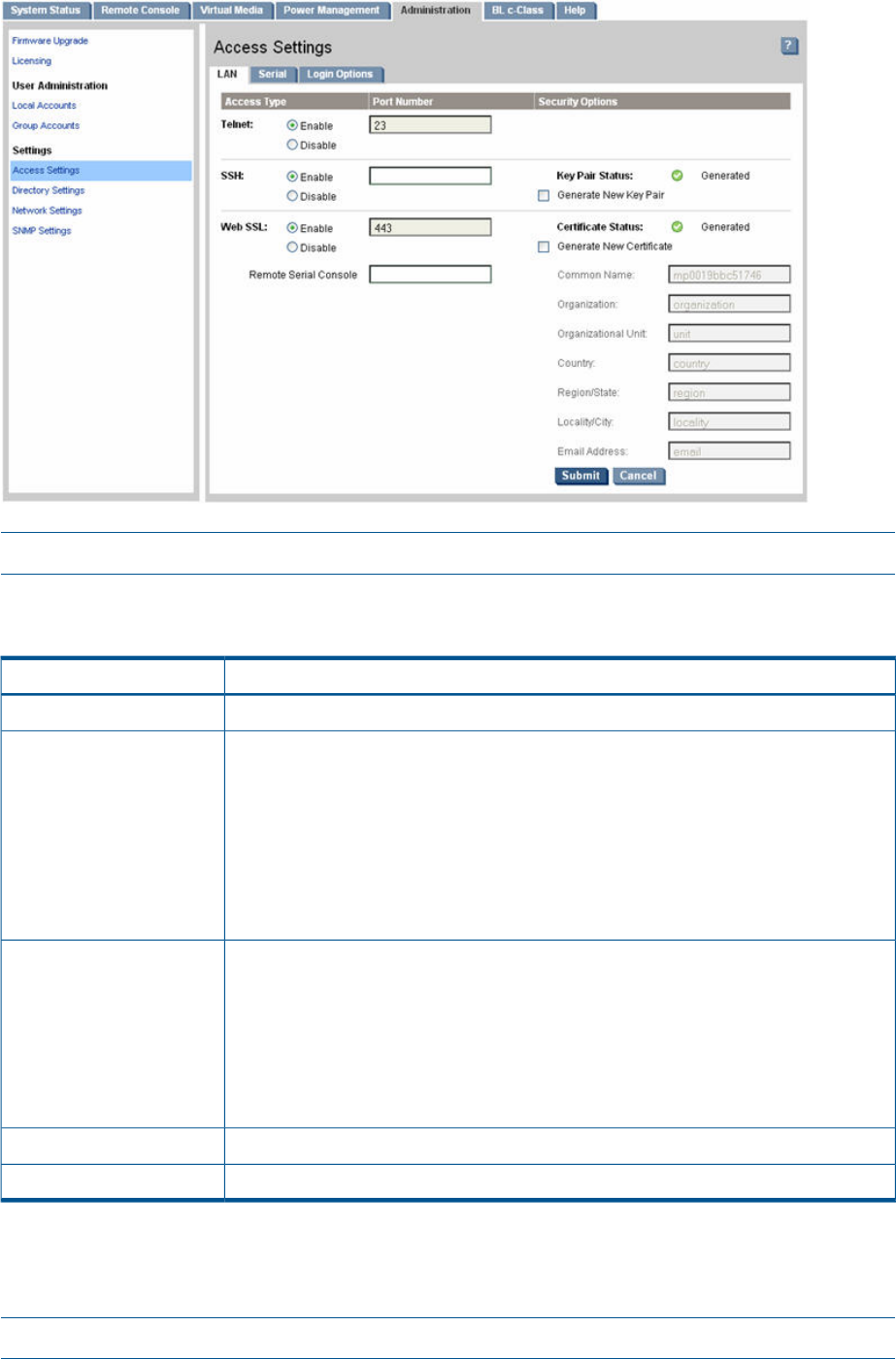 The Serial page (Figure 38) enables you to set the serial port parameters. You must have iLO