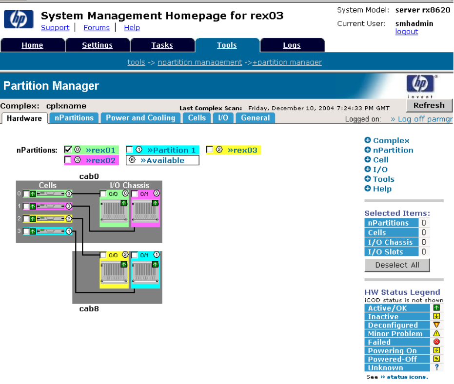 shown in Figure 3-1, the nPartition named rex01 is selected.
