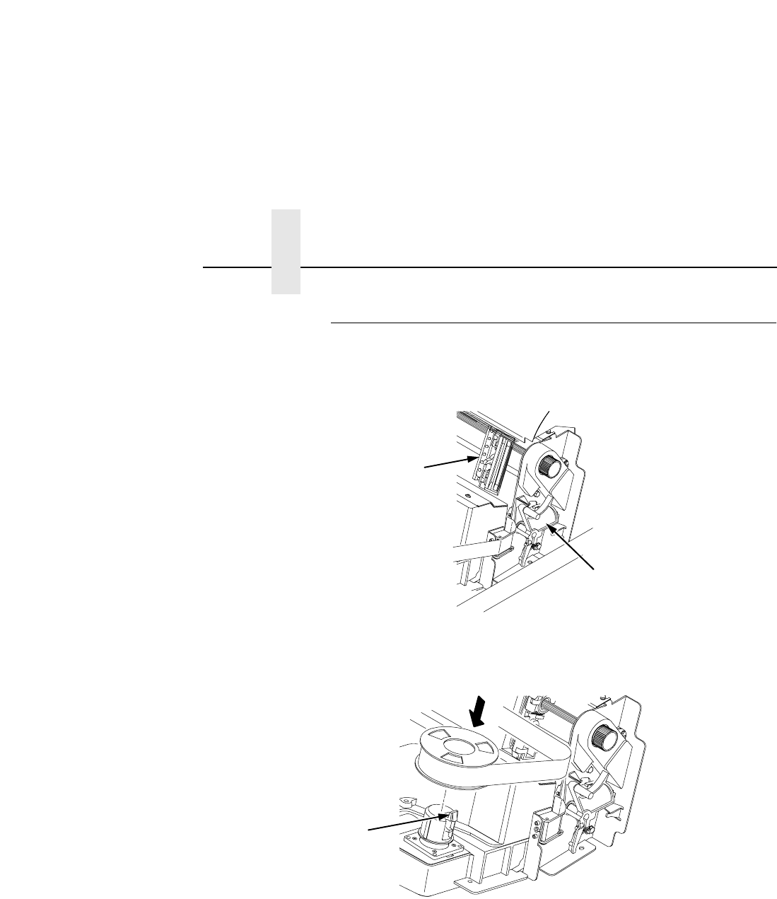 hub. Be sure the ribbon feeds off the outside of the spool. Press the