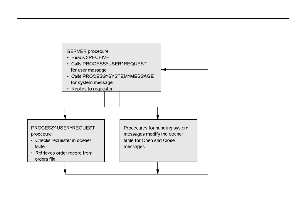 Figure 22-5 shows the function of each procedure in the order-query server and the