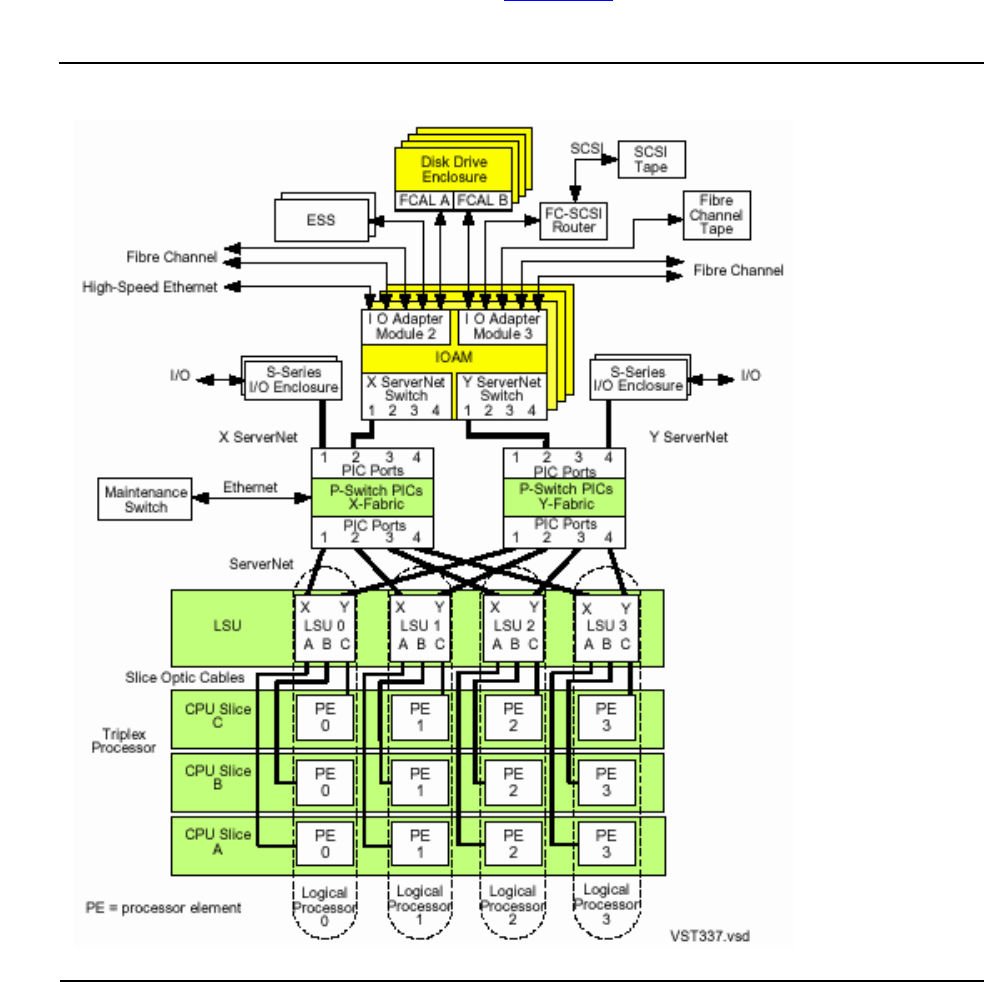 the LSUs, P-switches, and IOAMs, enabling an Integrity NonStop system to be