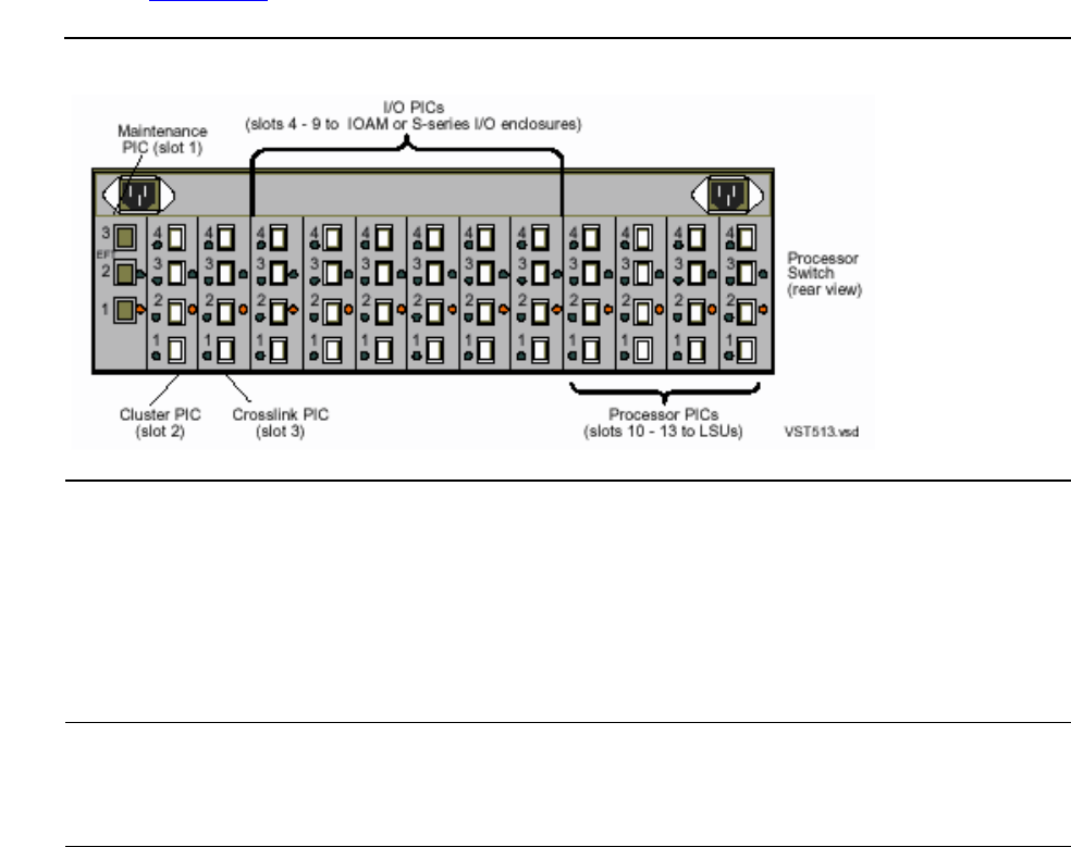 LSUs and processors. Cables connected to the PICs in slots 4 though 9 connect to