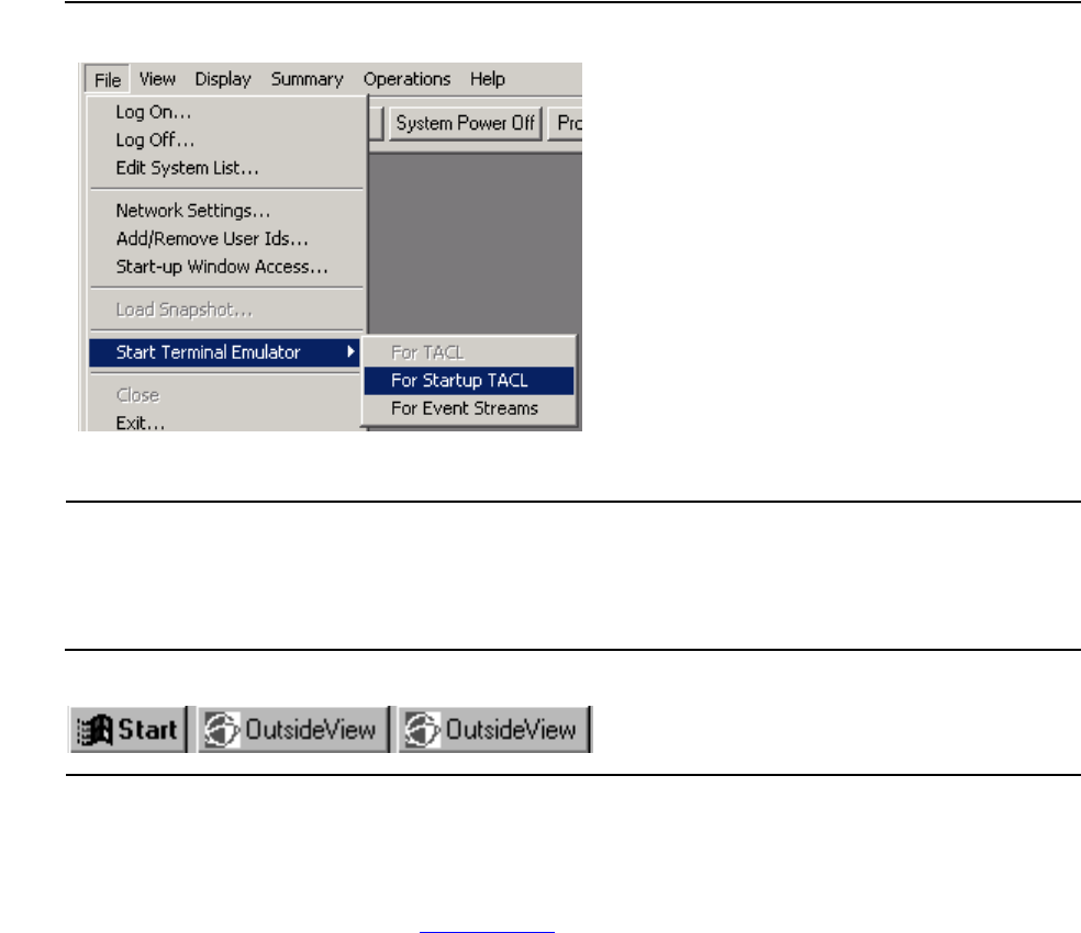 2. From the File menu, select Start Terminal Emulator > For Startup TACL.