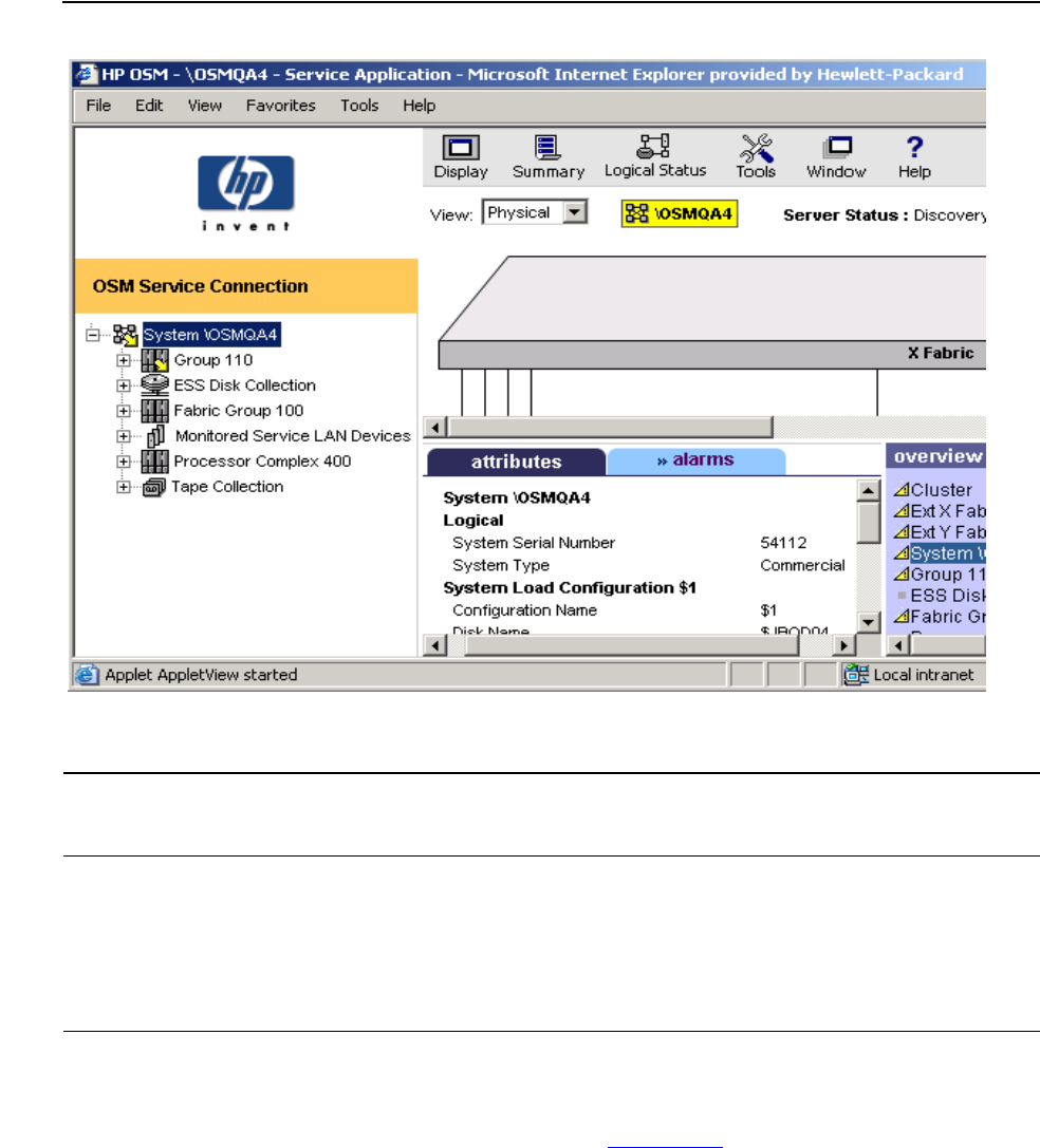 Note. In the OSM Service Connection Management window, the tree pane is located on the
