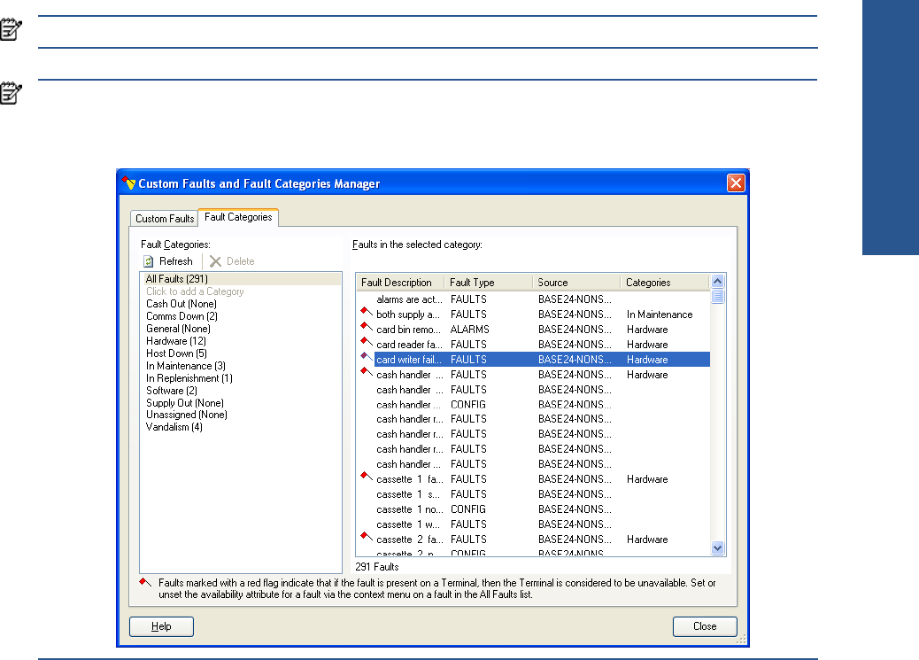 Fault Categories Manager dialog box. Click on the Fault Categories tab to access the corresponding tab