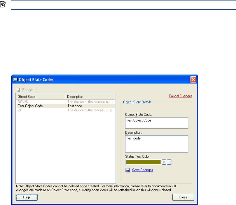 NOTE: Object state Codes cannot be deleted once created.