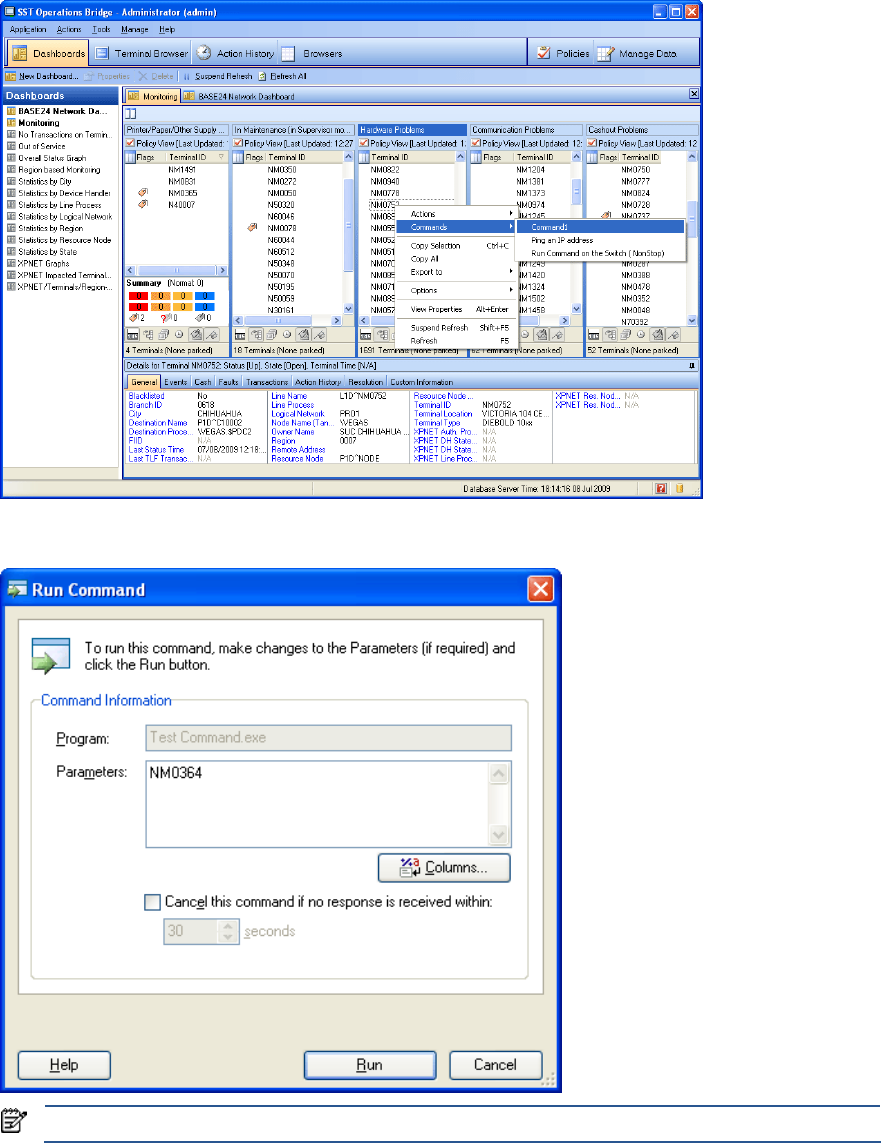 2. Select the command to be run from the displayed menu. The Run Command dialog box is displayed.