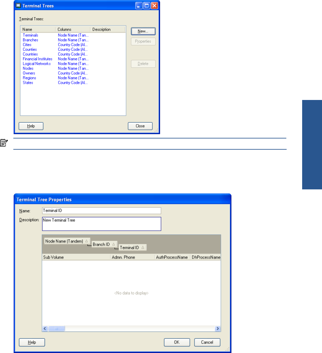NOTE: The pre-configured Terminal Trees are displayed in Blue text and cannot be deleted or modified.
