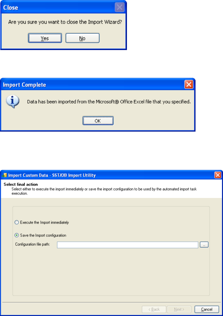 d. The Close box is displayed. Click on the Yes button to close the Import Custom Data wizard.