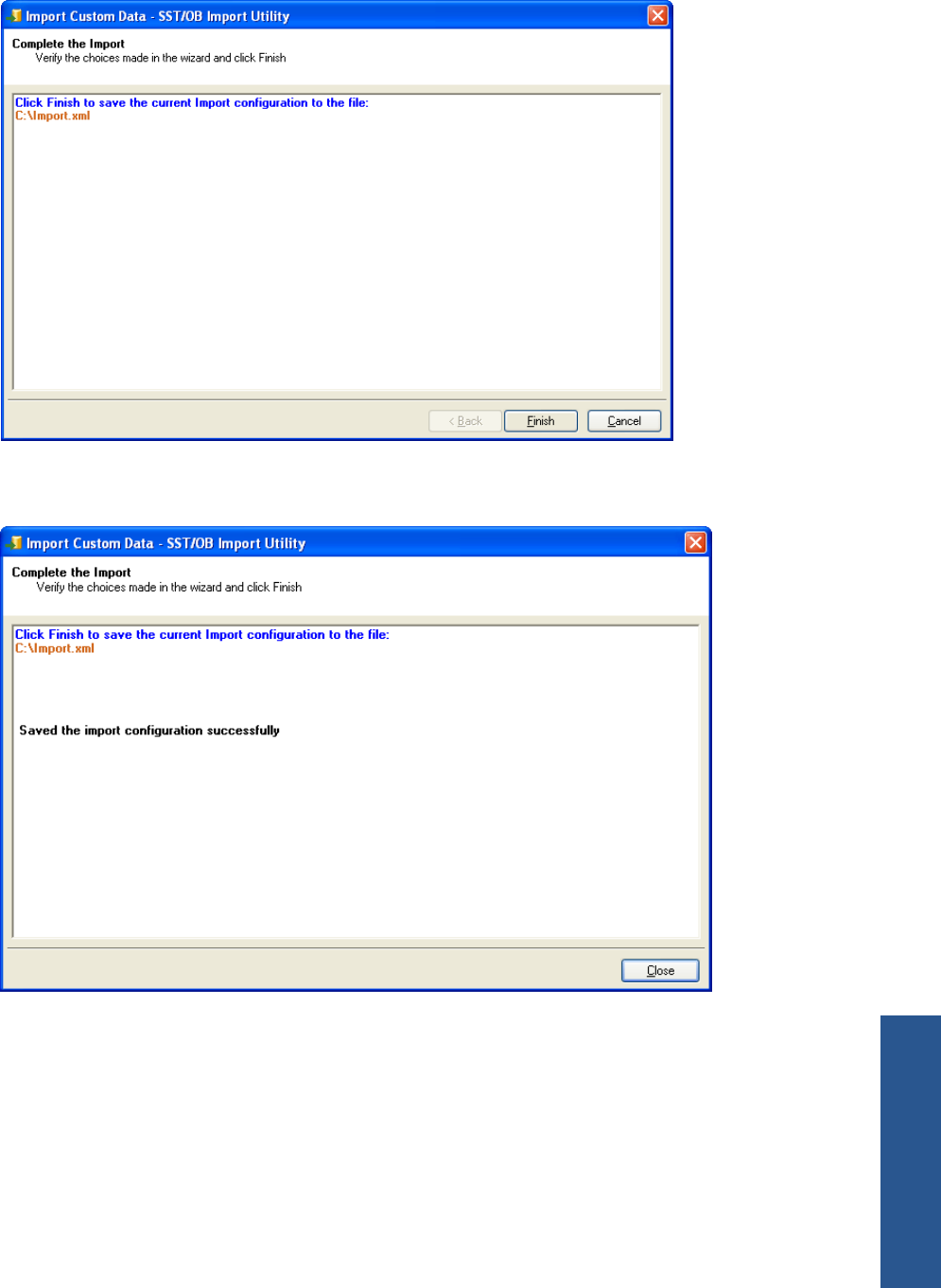 e. Clicking on the Finish button starts the process of saving the import configuration. The Complete the
