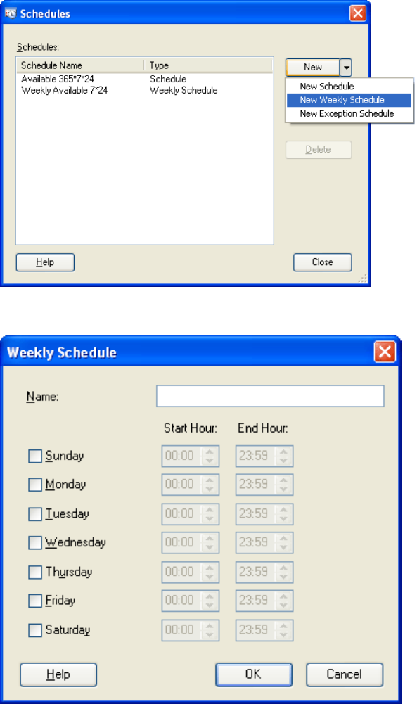 3. Clicking on the New Weekly Schedule option displays a Weekly Schedule dialog box.