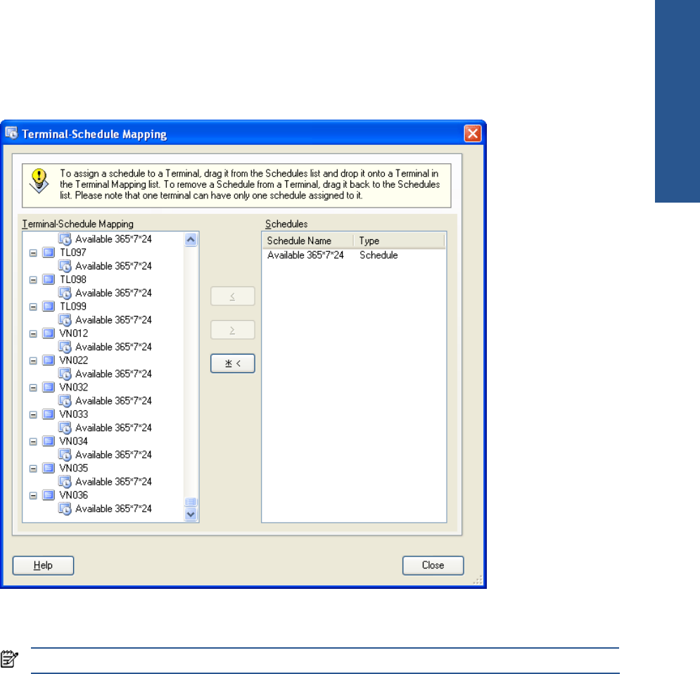 onto a terminal in the Terminal-Schedule Mapping list. To remove a schedule from a terminal, drag it back