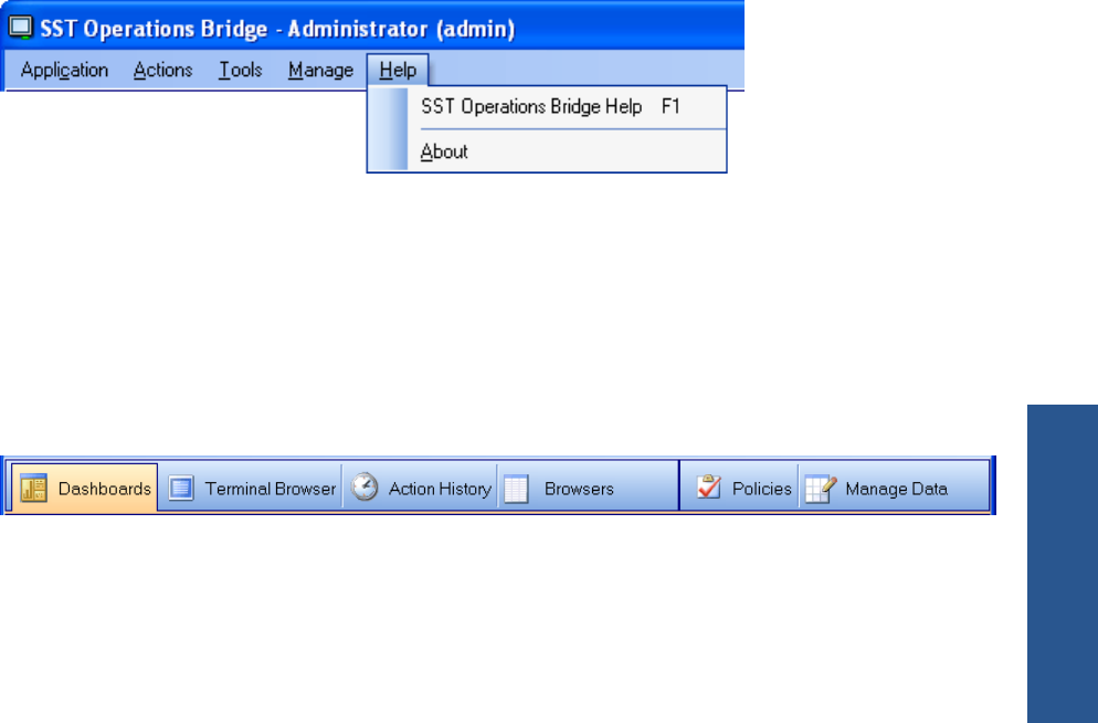 The Tabs bar is displayed just below the Menu bar in the SST/OB window. These tabs enable you to access the