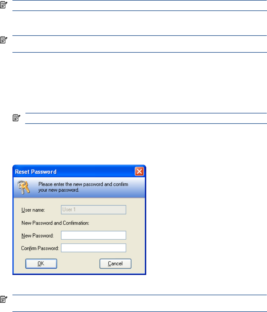 respectively to reset the password for the selected user.