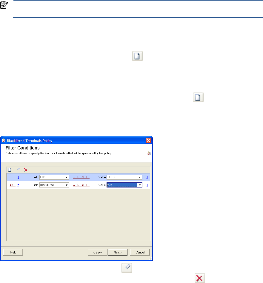 4. The Policy Wizard - Filter Conditions page is displayed. Use this page to define the conditions to specify