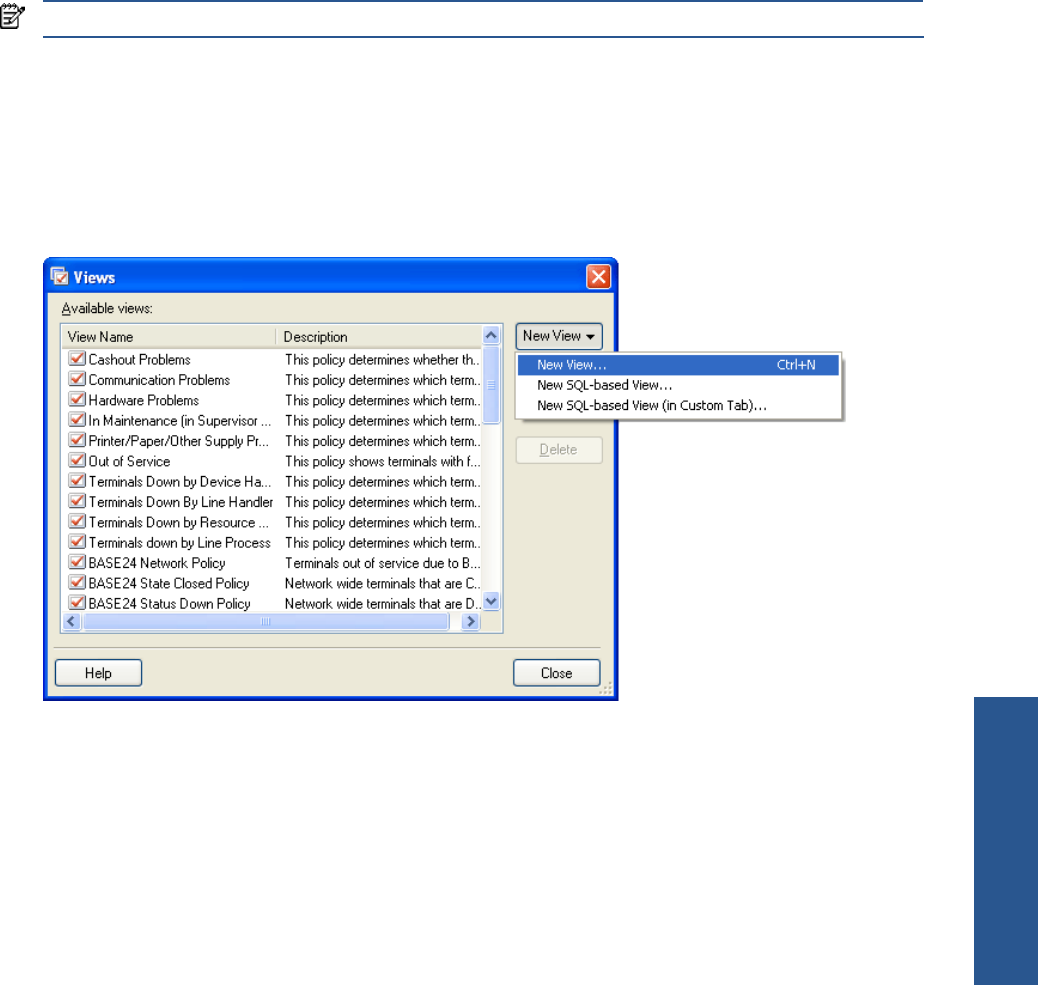 2. The Views dialog box is displayed with a list of all the configured Local and Policy Views. To create a new