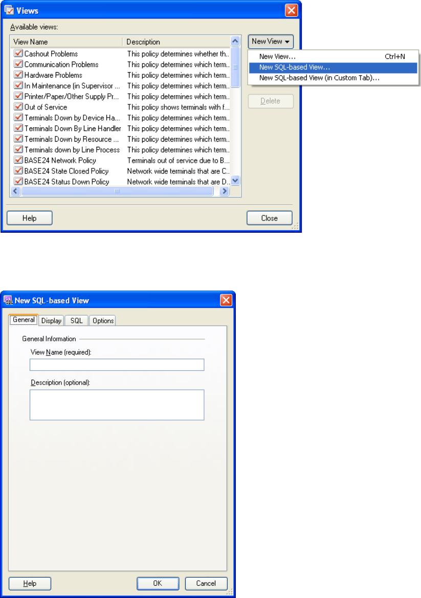Figure 8-19 Views Dialog Box with New SQL based View Option Selected