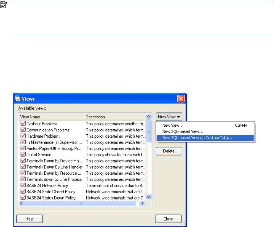 2. The Views dialog box is displayed with a list of all the configured Local and Policy Views. To create an