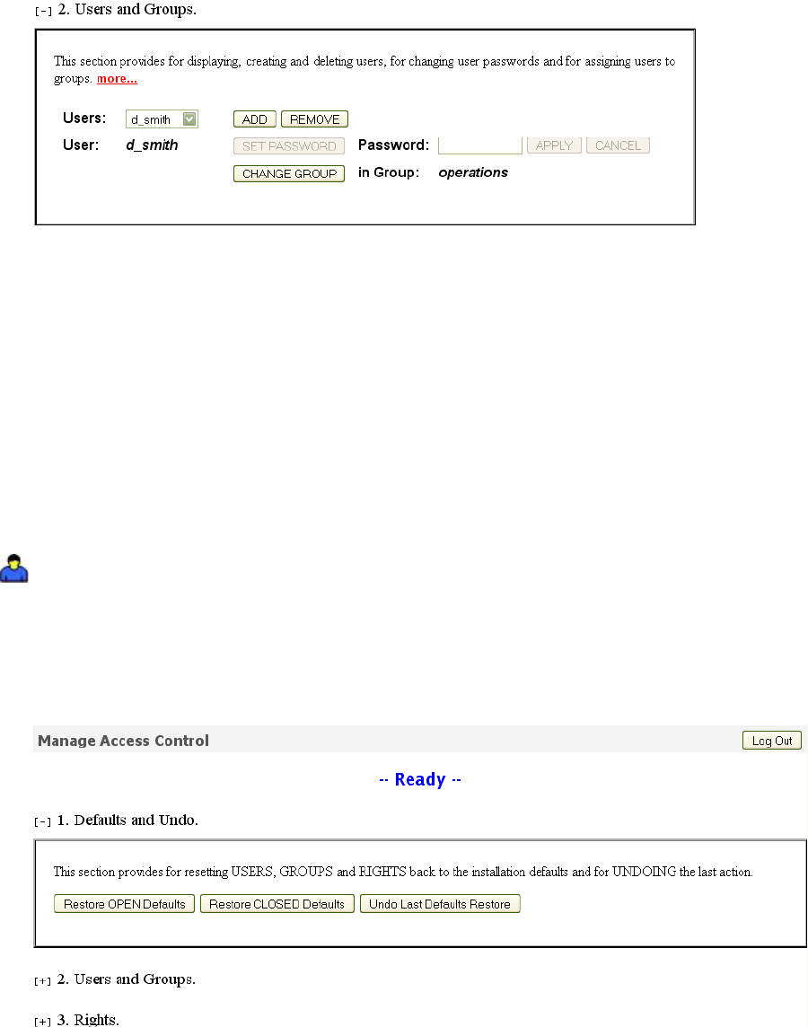 Groups define the access rights that are assigned to users. Three groups are provided: