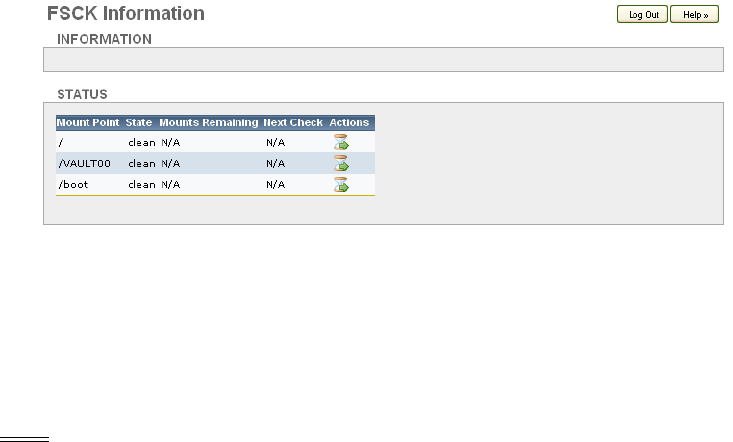 2. Click View File System Check Information. The FSCK Information page is displayed: