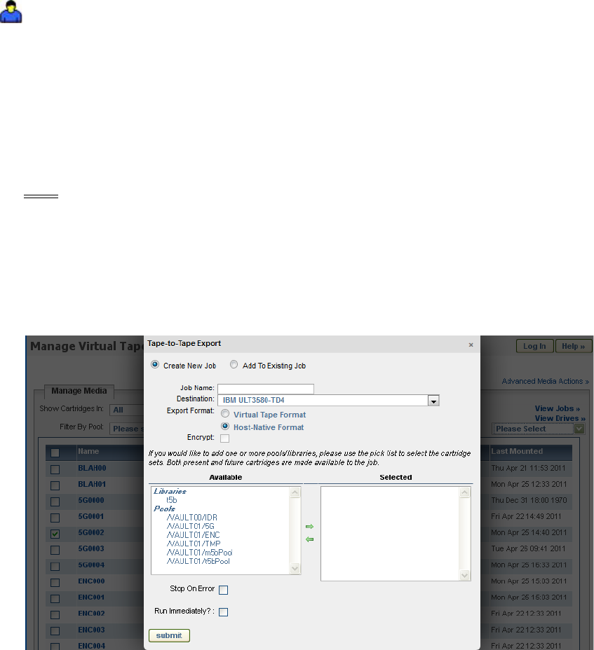 Requires the Virtual Tape Import and Export, Vault Access, and Access to all Vaults