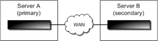 sites, Server A and Server B, connected by a wide area network (WAN):