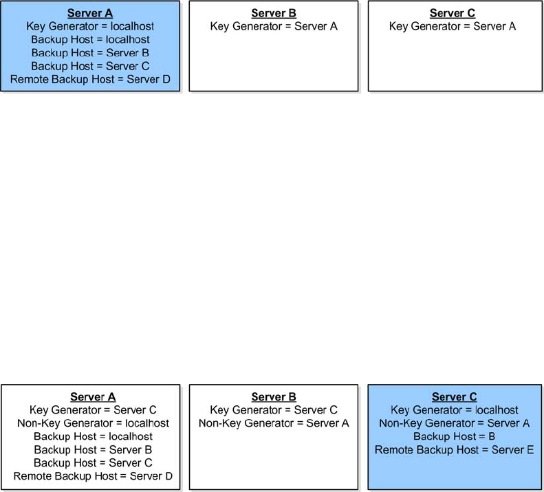 2. Reconfigure server A as a non-key generator on servers A, B, and C. To reconfigure a key